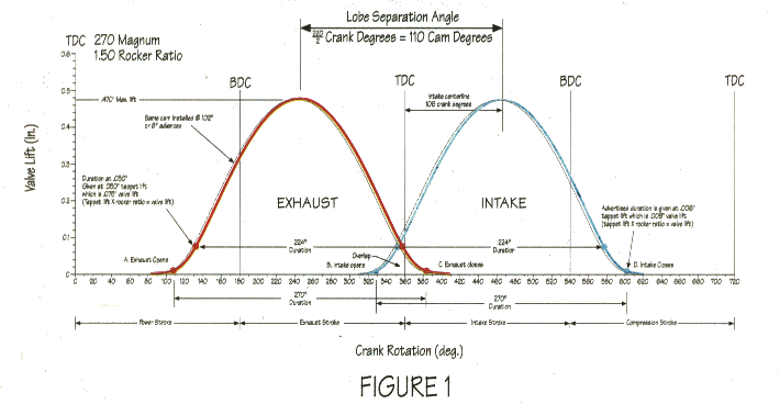 We touched on opening and closing points a little earlier, but now we want to consider them even further. We talked about when these points occur, and how they are measured. As you can see in figure 1, the valve begins to move very slowly then picks up speed as it approaches the top. It does the same closing, coming down quickly then slowing to a gentle stop. It's kind of like driving your car. If you were to go from 0 to 60 mph in a fraction of a second and stop instantly, you can imagine what that would do to the car, not to mention the driver. It would be much too severe for any valve train to endure. You would bend pushrods, wear out cams, break springs and rockers, and lose all dynamic design. The cam would not run to the desired RPM level as you would have all these parts running into each other. As the valve approaches the seat, you also have to slow it down to keep the valve train from making any loud noises. If you slam the valve down onto the seat, you can expect some severe noise and a lot of worn and broken parts. So it is easy to see that you can only accelerate the valve a certain amount before you get into trouble. This is some- thing Competition Cams has learned over the years-how far you can safely push this point. Looking a bit further at the timing points, the first one we see on the diagram is the exhaust opening point. We have all noticed the different sounds of performance cams, with the distinct lopes or rough idle. This occurs when the exhaust valve opens earlier and lets the sound of combustion go out into the exhaust pipes. It may actually still be burning a little when it passes out of the engine, so this can be a very pronounced sound. The next point on the graph is the intake opening. This begins the overlap phase, which is very critical to vacuum, throttle response, emissions and especially, gas mileage. The amount of overlap, or the area between the intake opening and the exhaust closing, and where it occurs, is one of the most critical points in the engine cycle. If the intake valve opens too early, it will push the new charge into the intake manifold. If it occurs too late, it will lean out the cylinder and greatly hinder the performance of the engine. If the exhaust valve closes too early it will trap some of the spent gases in the combustion chamber, and if it closes too late it will over-scavenge the chamber; taking out too much of the charge, again creating an artificially lean condition. If the overlap phase occurs too early, it will create an overly rich condition in the exhaust port, severely hurting the gas mileage. So, as you can see, everything about overlap is critical to the performance of the engine. You can reach the author by e-mail at: compcams@memphisonline.com |